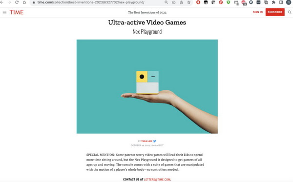 《时代》周刊赞誉称:“有些家长担心电子游戏会让他们的孩子长时间保持坐姿,而Nex Playground的设计目的是让所有年龄段的玩家都能运动起来。该AI游戏机配备了一套游戏,玩家可以通过全身运动来操控游戏,无需控制器。”基于AI算法,这是一款挑战创新规范的技术杰作。