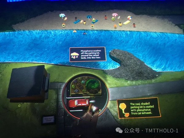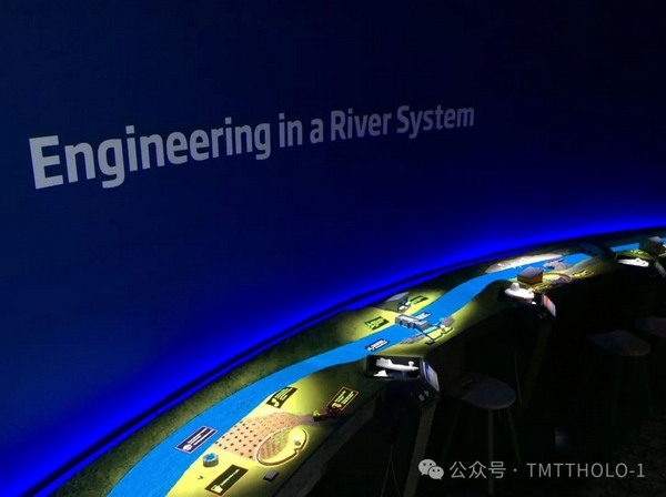 《河流系统》沉浸式场景互动沙盘,通过投影与识别技术,将展台打造为栩栩如生的沉浸式河流“场景桌”。