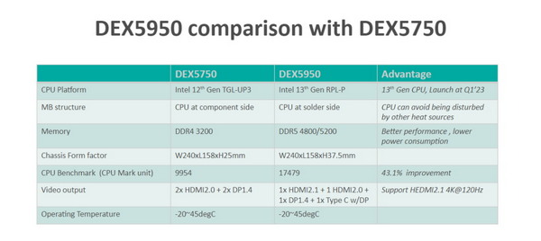 值得期待的是,新款多媒体播放器DEX5950相比于DEX5750做了不少的升级:如CPU性能提升43.1%;主板结构由CPU在组件侧改为焊接侧,这能使CPU避免受到其他热源的干扰,更耐热;还有更强的视频播放效果等。新产品的一切升级都是为了更好地满足用户需求。