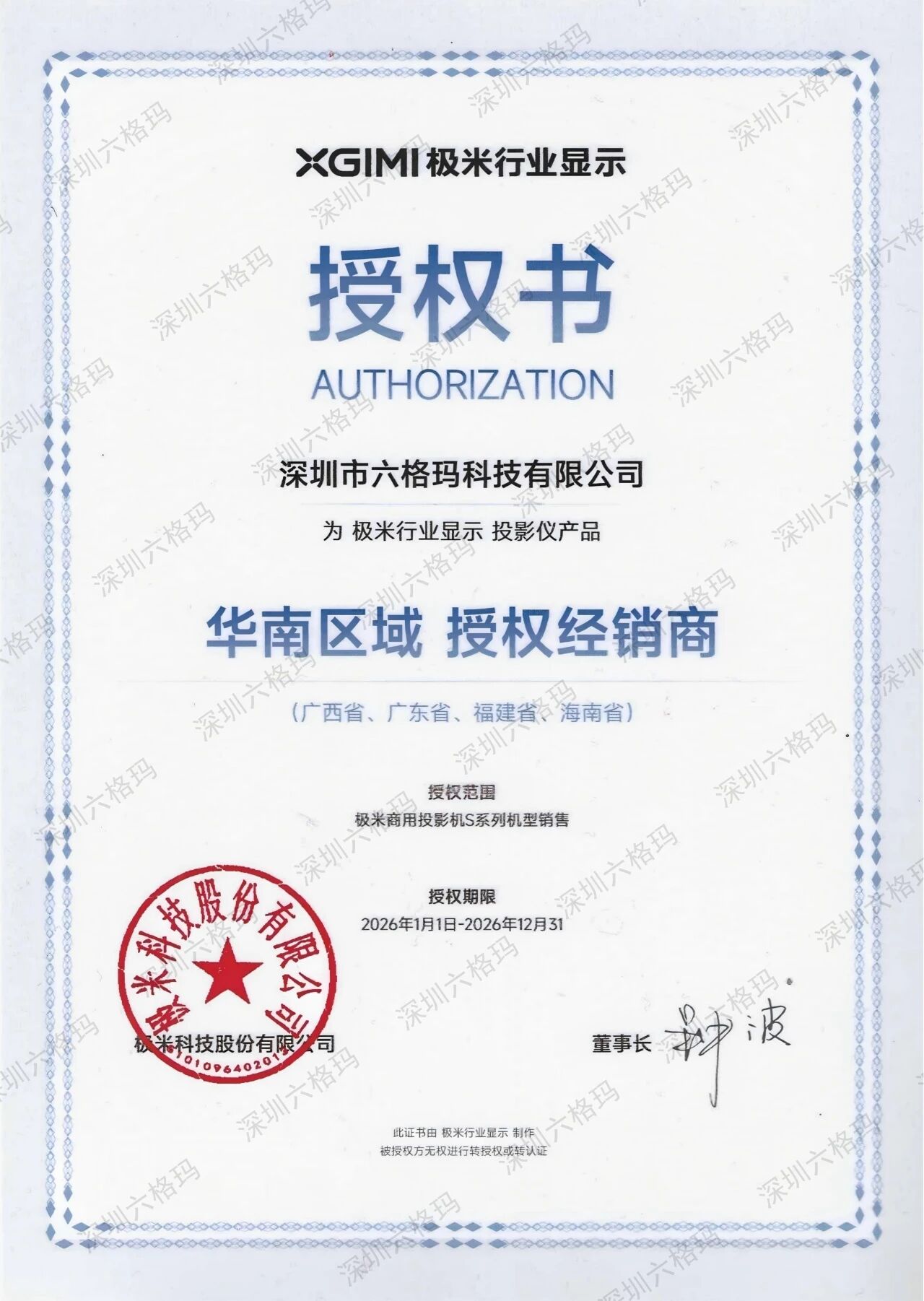 极米授权六格玛华南区域总经销