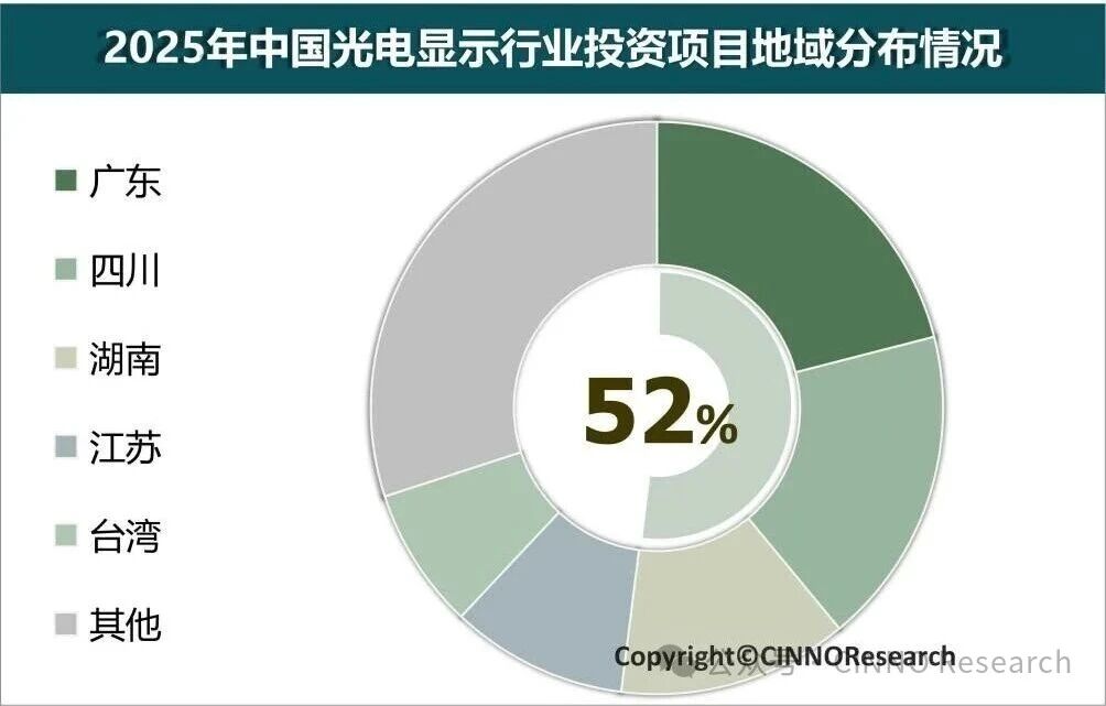 图示: 2025年中国(含台湾)光电显示产业投资项目分布情况,来源: CINNO Research