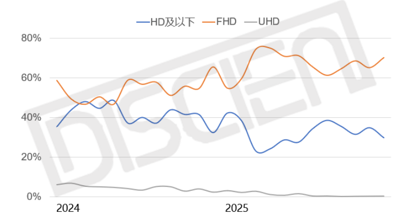 图二:2024-2025年中国零售市场1LCD产品分清晰度销量份额