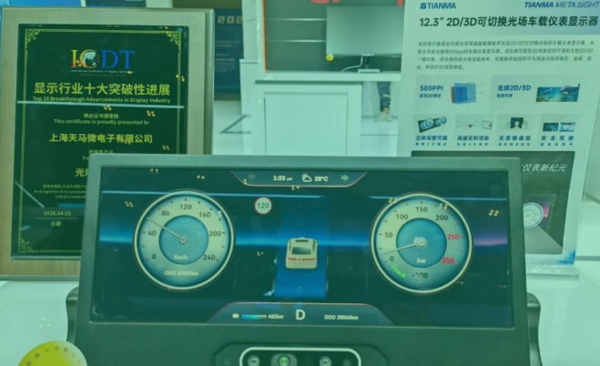 一、天马: 12.3 英寸 2D/3D 可切换光场车载仪表显示器:全球首款液晶棱镜裸眼3D早已有之,但是天马这个产品是业内首台采用液晶棱镜技术实现 2D/3D 切换的。看公开资料,猜测是用树脂做成凹透镜,再和另外一片玻璃对盒,中间设置去向层和液晶。从而控制液晶分子的转动,实现棱镜的调节,从而实现 3D 深度实时可调和无损 2D/3D 一键切换。再搭载 500ppi 的显示屏和光场渲染技术,极大优化了显示效果。