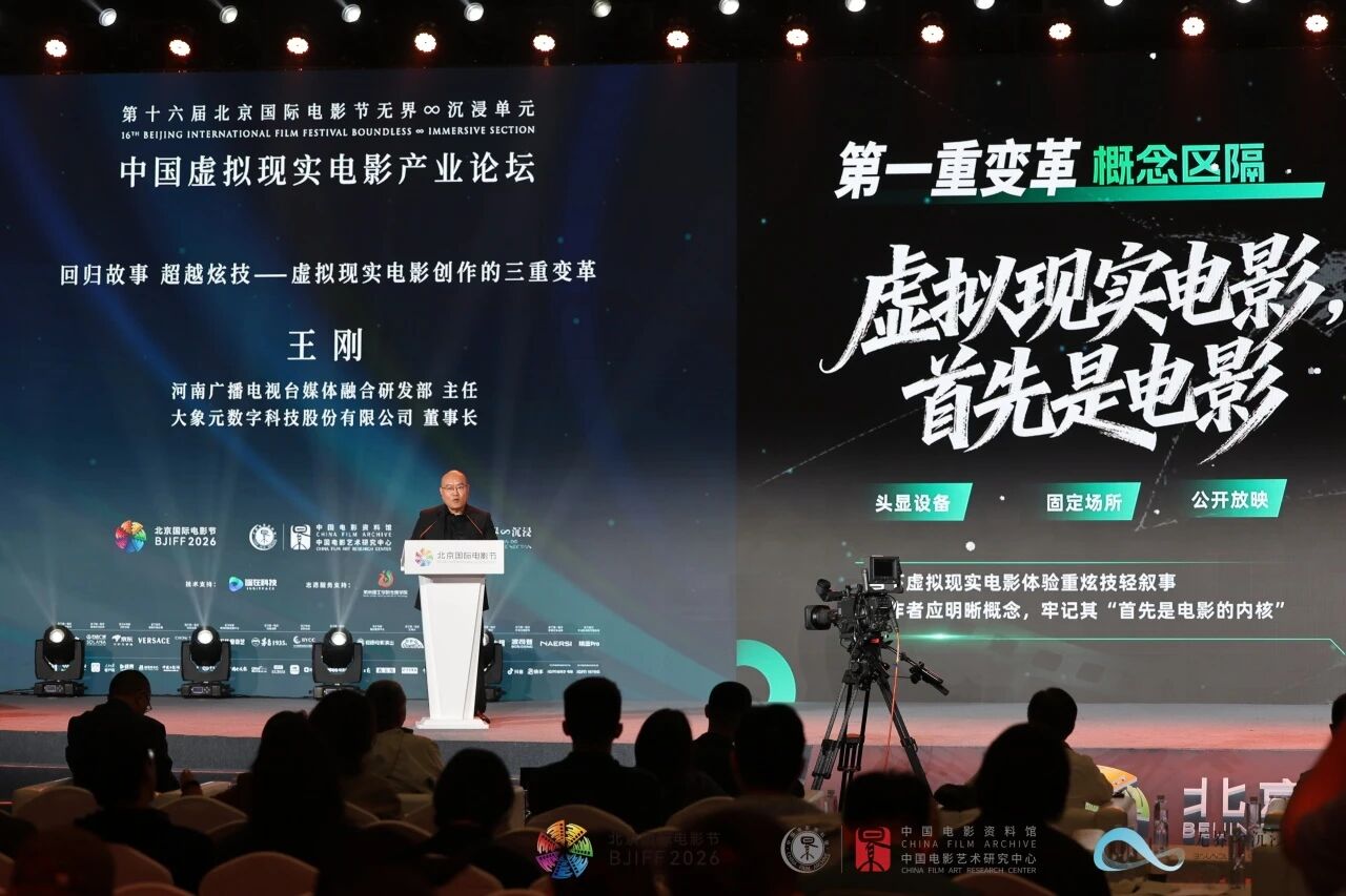 近年来,河南广电在虚拟现实电影赛道先行先试,收效良好。论坛上,河南广播电视台媒体融合研发部主任、大象元数字科技股份有限公司董事长王刚建议虚拟现实电影在概念、创作、时长三方面尝试探索:在概念层面,需明确虚拟现实电影本质是电影,不能仅追求技术炫技,要重故事、人物与情感;在创作层面,要构建全新空间叙事语法,从线性叙事转为空间叙事,用光线、声音自然引导观众;在时长方面,受头显设备限制,虚拟现实电影的合理时长在20分钟到40分钟之间,需用高效空间叙事手段在短时间内完成情感传递与叙事。