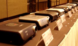 夏普在全球家用投影机市场的表现可谓可圈可点。此次会上,夏普针对中国家用市场投放了两款经济型家用DLP投影机XV-Z100A、XV-Z120A。这两款产品采用6色轮和专用的家用机软件设计,2500:1的高对比度带来细腻丰富的画质,造型简洁,时尚美观,非常适合家庭和卡拉OK使用。