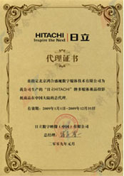 日立投影机中国市场总代理证书