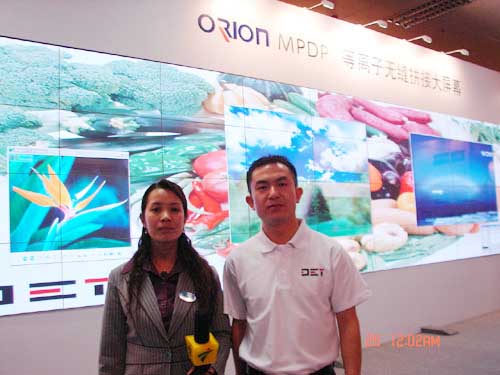 在介绍采访的过程中,孙经理特别谈到德浩公司MPDP单元将会做到60寸,且计划在2008年上市。在将来的发展阶段,德浩产品力求在大屏幕拼接缝方面隙降低到1毫米,生产出更高对比度、具备更稳定性能电源的产品。