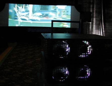 | 选用Panasonic PT-DW10000C投影机和Stewart正投软幕。采用2台投影机横向叠加技术,可提升整个显示画面的亮度。 |