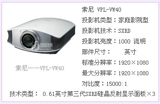 | 迄今为止,索尼在中国市场已经投放了五款SXRD技术家用投影机。按产品推出时间排列分别是VPL-VW100、VPL-VW50\VPLVW60、VPL-VW200 及其VPL-VW40。