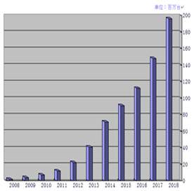 2008年的市场容量为1.4亿美元,市场份额为0.1%;