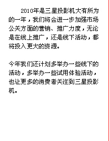 近日获悉,三星商教投影新品L305即将上市。该机具备全球独有的“多媒体浏览器“功能,彻底摆脱了PC束缚,并且亮度达到3000流明。