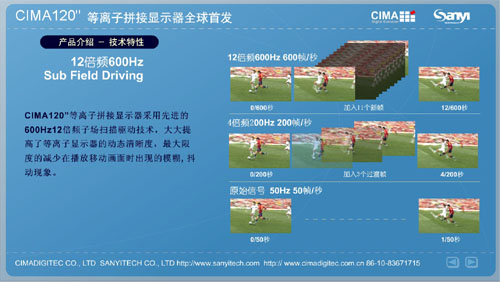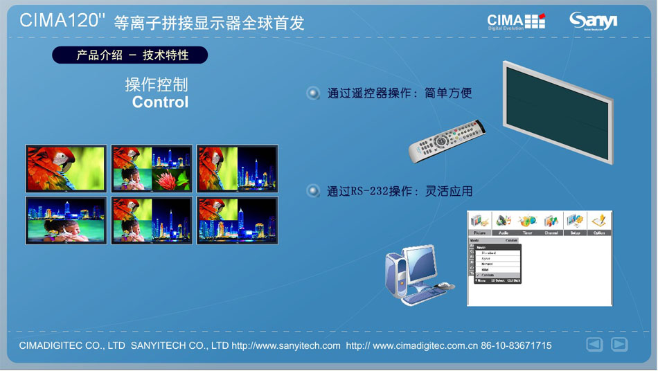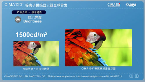 | CIMA 120”等离子拼接显示器全球首发 2010年4月8日,国内大型显示器件专业供应商北京三一友泰科技有限公司在世纪金源大饭店举办了主题为“创先突破 视领天下”的新产品发布会... [详细] 应用无限-CIMA 120”等离子拼接显示器 大屏幕拼接显示产品已有十几年发展历史,在大屏幕行业人士共同努力下,拼接显示无论在技术方面还是在应用需求方面都得到了迅猛的发展... [详细] 详解CIMA 120”等离子拼接显示器 大屏幕商用行业的不断发展,促使拼接显示技术也得到了多元化进步,尤其是等离子、液晶拼接技术发展的不断进步,很大程度上满足了消费者的... [详细] |
