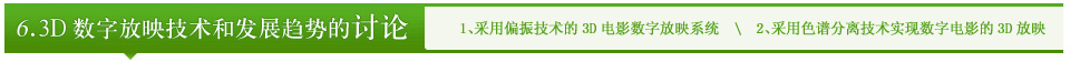 | 数字电影放映技术再次掀起3D放映的新浪潮,我们还是只从数字放映机支持3D放映的技术层面探讨有哪些可行方案可供客户选择。立体成像原理是利用我们人类的眼睛在观察一个三维物体时,由于两眼水平分开在两个不同位置上,所观察到的物体影像是不同的,它们之间存在着一个像差,由于这个像差的存在,通过人类的大脑,使我们感觉到一个三维世界的深度立体变化数字电影3D放映系统就是帮助观众还原这种感觉,让其双眼看到左右不同的影像,从而产生立体效果。 | |||||||||||||||