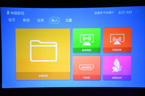 神画Z1智能影院是一款号称全球最小的高清高亮智能影院,机身仅仅苹果6plus的大小,俗话说的好,浓缩就是精华,如此小巧的外观下,它的性能却强悍无比,基于Android 4.4深度定制的PIQS UI,这也是智能投影摆脱电脑附属的重要转变的基础,成为真正的智能终端设备。