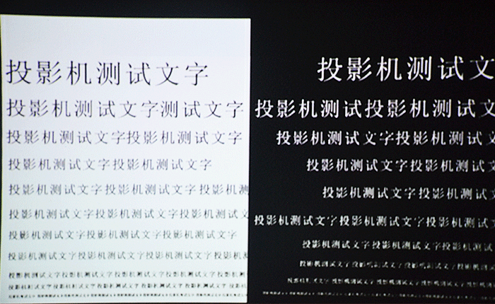 即使在密集性很强的文字显示中,康佳H1的表现也可圈可点。图中的投影机文字测试中,康佳H1的总体的清晰度还是不错的。(由于拍摄原因,实拍图与实际显示图(更清晰)存在些许误差)