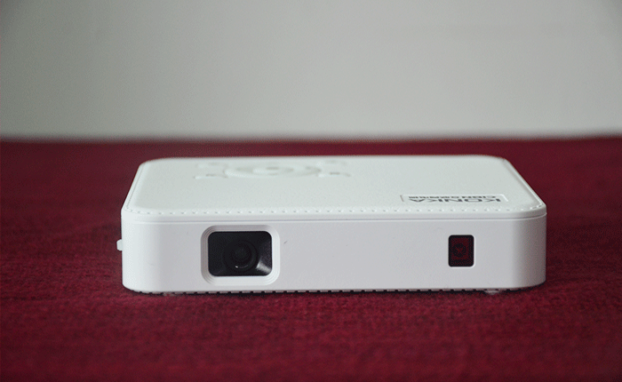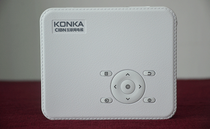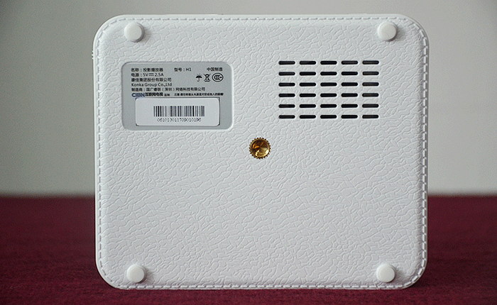 康佳智能口袋影院H1外观尺寸仅为120(L)x100(w)x25(H)mm,重量185g, 比一部4.7寸智能手机的长宽还短,即使小朋友也可轻易拿起。主机以白色为主色调,简洁又美观。不论在家还是外出,即走即拿,走到哪里都可以带上一座“影院”的体验感,堪称行走的“智能影院”。