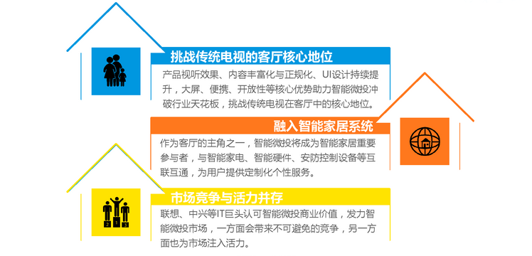 2016年,智能微投在用户关注的易用性、携带性、应用环境及使用场景等方面对传统投影机、电视等做了较大优化,如可通过无线方式实现与智能手机、平板电脑等移动设备互动,可实现大屏观看电影电视剧,也可玩游戏、协助办公等等。市场的火爆使厂商们必然不会放弃这块蛋糕,然而微投产品的真正兴起还是需要对整个产品的功能性进行完善。