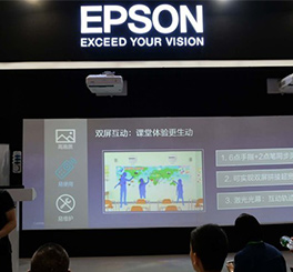 爱普生一直注重教育行业,旗下多产品家族都在教育行业推出了针对性的解决方案。投影机产品推出了双屏拼接,可以横跨整个教室的黑板区域,在更大跨度上展示更丰富的课件内容。