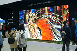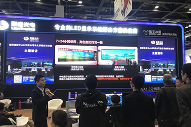 北京InfoComm,Voury卓华展览主屏采用P1.2微间距LED组成,整屏尺寸为4.8m×1.35m,整屏分辨率将达到3840×1080;辅屏采用P1.4微间距LED组成,整屏尺寸为2.88m×1.62m,整屏分辨率将达到1920×1080。除此之外还有P0.9、P1.5、P1.6、P1.8、P2.0等不同点间距的显示屏进行展示,产品涵盖面非常广。