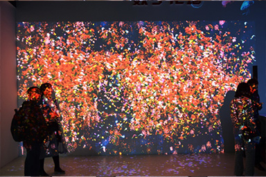 本次展会中,NEC工程投影机打造精彩创意方案,最醒目的当属数字花墙,其墙面主画面由NEC旗舰工程投影机NP-PH3501QL+呈现,4K 1.38村3片DLP技术配合双色激光光源实现40000流明高亮度和全DCI色域覆盖,创造精细锐利,色彩逼真的画面,独有的CCT内循环散热专利技术,完美胜任户外演出、建筑Mapping、舞台表演等高端应用。此外,4台NP-PA803U+垂直吊装投影地面,观众可与虚拟场景互动,虚实融合。