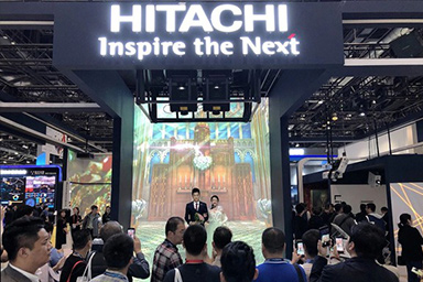 日立投影机打造了丰富方案,贴近生活的场景设计,更加真实亲切,让观众置身于日立投影机创造的舞台、音乐会厅、客厅、美术馆、橱窗广告牌、餐厅、艺术画廊、投影游戏之中,近距离感受视觉盛宴。走进日立展区,最引人瞩目的是光雕舞台,效果震撼,8台日立TCP-BL10000U激光投影机在高4.5米,深4.5米的L型舞台上进行光雕投影,模拟婚礼场景,一对新人站在舞台上,巨幅画面展现了从花瓣飘舞到庄严礼堂,让观众沉浸其中,营造浪漫氛围;除了结婚典礼,光雕舞台方案还可广泛用于时尚秀台、商场活动等领域。