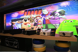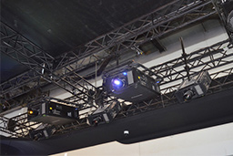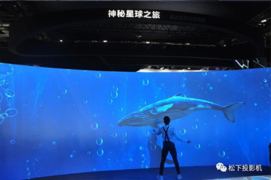 4通道融合舞美演艺投影系统由4台10,000流明激光工程投影机DU8190Z组成,搭配0.38:1超短焦变焦镜头,此方案可应用于舞美演艺、展览展示等多种领域,集科技性、互动性、趣味性于一体,吸引了现场很多观众前来互动体验。