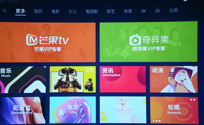 在视频资源方面,极米New Z4的资源库绝对超出你意料之外。影视、电影、综艺、少儿、体育、4K、3D等一应俱全,每一个频道还进行更细致的分类,海量资源,尽在极米New Z4。同时,New Z4还搭载GMUI 3.0智能系统、百度人工智能系统DuerOS,聪明的GMUI3.0让极米无屏电视与你充满默契。智能系统+操作,让你搜索影片资源更加迅速,惊不惊喜意不意外!