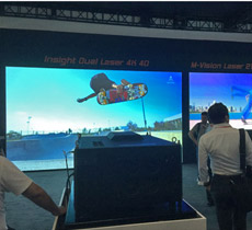 | 美视菲涅尔结构激光电视屏幕,美视投影屏幕多年来在各行业应用中获得了出色的知名度和口碑,展会现场美视展示了适合家用、教育、会议、演出等各类应用场合的屏幕产品。 | 爱普生首次展出30000流明高亮度旗舰新品CB-L30000U激光工程投影机,现场进行了单机超大幅面互动地投影。这款新品体现了3LCD结合激光技术的优势,其具备更高的对比度,更高的分辨率,更高的色彩亮度,结合了激光光源的超长寿命和超高稳定性,为重大活动、舞台演出、大型会场、主题公园等高端应用提供了新选择。 |