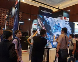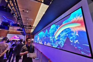 | Viamax(纬而视科技)携80英寸激光RGB三色激光DLP拼接单元及拼墙、新钻石硬屏P0.9、P1.2 COB小间距LED显示屏、BOE 110英寸4k LCD展示超大无缝互动显示屏亮相北京InfoComm。此外,Viamax(纬而视科技)还携手美国溥美(Prysm)在P馆VIP ROOM 401打造超大型的无缝互动显示屏解决传统显示技术难题,提供视觉完整性和交互性兼备的解决方案。 | 该产品采用利亚德独创的4 in 1 Micro LED显示技术 ,发光像素尺寸微缩至1.08mm*0.95mm,是目前市场上可量产的最小间距显示产品。利亚德Micro LED技术区别于传统固晶焊线工艺,采用巨量转移技术 ,实现电气连接,并进行封装检测切割及分bin以提高整屏色彩一致性。当前业内规模化使用的pick and place工艺每小时可转移1万~2.5万颗LED晶粒,而利亚德Micro LED转移效率可达到50颗/秒,即每小时18万颗,且转移良率高,转移成本可控。此款micro LED显示屏与传统小间距屏相比,整屏对比度提升25%, 光型均匀度更佳,看时产生的炫光减弱,同时更易于与触控显示技术融合,大大拓宽了产品应用空间。 |