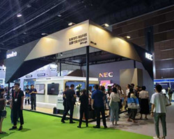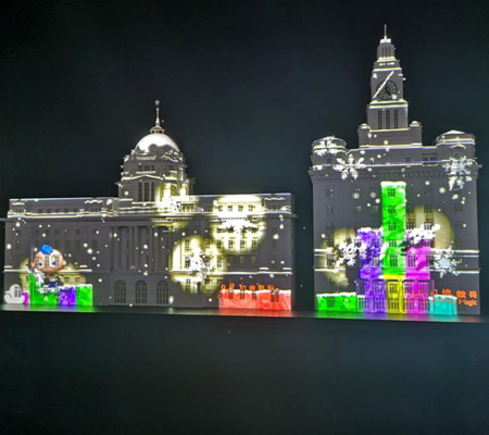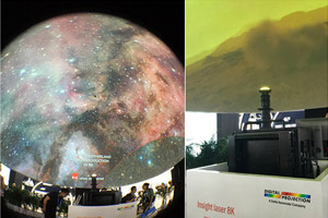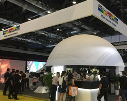 | 在INSIGHT Laser 8K单机的基础上,DP携手合作伙伴共同在本次展会推出了8K投影机球幕应用解决方案,在10m宽的展台上呈现单台投影机投射7m直径半球应用,球幕分辨率可达4K×4K@60Hz。2018年DP发布了全球首台超高亮度8K激光投影机-INSIGHT Laser 8K,将画面精细度与身临其境感提升到更高层次。超高分辨率让产品表现非常细腻,亮度足以应付各种苛刻的安装空间和照明环境,是唯一目前不需要采用融接技术就能播放8K影像,可以应用在多种不同的领域。8K投影机的开发,代表着DP在显示行业技术的领先,也将带动现有的4K与2K投影机产品的销售。 | 松下奇幻星际之旅,该展项采用两个型号的松下激光光源工程投影机PT-FRZ120C、PT-FRZ98C各6台。利用数字化技术复原山谷、悬崖、森林、水流,并模拟昼夜交替下的不同景象。 屏幕上超长跨度的广阔画面营造出高度沉浸感。同时,各种虚拟影像还可根据观众的动作做出不同的变幻,营造人与景的互动,人与物的互动,仿佛真实踏入外星球,给人带来梦幻缥缈的视听体验。 | NEC在展会中精彩演绎3D MAPPING方案,将杭州武林广场户外3D楼体秀微缩还原,利用NEC PH3501QL+配合高端3D mapping软件在8×4米的微缩建筑表面展示动态画面。PH3501QL+双色激光工程投影机不仅配置4万流明超高亮度及4K超高清画面分辨率,还具有各类工程、画面的调校系统。同时,出色的防尘散热结构保障机器在极端环境中的稳定性,使其完美胜任各类户外演出。 |