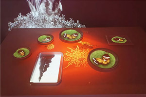 | 佳能3D Mapping投影采用两台7000流明激光工程投影机WUX7000Z搭配超短焦镜头RW-SL06UW叠加实现,除了LCOS技术带来的细腻高画质和高色彩还原度外,超短焦镜头RW-SL06UW还支持大范围镜头位移,垂直最大可达90%。同时,该款镜头的TV失真小,在多机融合投影时可使画面边缘融合更加自然。该解决方案仅需1.16米的距离便可投影100英寸画面,即使靠近屏幕的位置也能投影出色彩逼真、画面清晰的大尺寸影像。 | 麦克赛尔沉浸世界展区通过三维空间内的沉浸式投影创造奇幻视觉空间,结合三维传感器使得参与者的动作实现影像化。观众踏入展区中,随着步伐的移动,身边的影像动静、虚实结合,让观众体验不同次元的感官享受。曲面:1DLP激光光源投影机MMP-BL1000U 2台;地面:1DLP激光光源投影机MMP-WL620U 2台。 | "帝王邀约,乾隆御宴"展项,应用黑科技5D光影餐桌,重现宫廷进膳情境。不仅餐厅的三面墙壁用画面包围着观众,餐桌上亦是流光溢彩,每个餐盘上都覆盖有独特影像,移动餐盘,影像亦随之移动,充满创意。 |