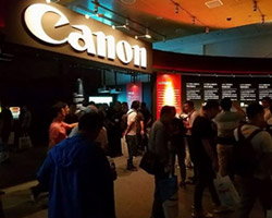 | 松下展示了一款激光工程投影机新品PT-FRQ100C。这款单芯片DLP投影机分辨率高达WQXGA+,亮度达到了10000流明,具备出色的色彩表现力,搭载多种功能丰富的接口,具备20000小时免维护,高稳定性兼顾紧凑机身,可满足主题公园、会议、展览展示等多种行业用途。 | 佳能所展示得4K曲面投影解决方案采用了具有原生4K超高分辨率,6,000流明的4K600STZ激光工程投影机,该机搭载了3片4K LCOS反射式液晶面板,可以呈现平滑、细腻、几乎无栅格、具有高色彩还原度和丰富层次感的影像,为用户带来了如亲临现场般的沉浸感。 |