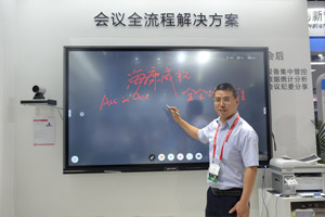 | 海康威视会议平板集书写白板、电脑、电视、音响、投影、视频会议等功能于一体,具备触摸书写、无线投屏、多屏互动、远程协作等多种功能,满足多样化的场景和行业需求。为中国企业提供千台会议平板免费试用。 | 魔屏本次展会带来了中小型会议室,高管协作会议室,AI头脑风暴会议室等特色会议场景体验,打造AI未来会议空间,让信息流动更自由,参会体验更舒适。 |