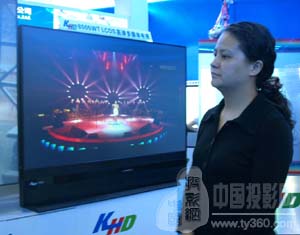 在Lcos产业链展区内,鸿源展出了70和80寸的整机。KHD8005是鸿源公司推出的LCOS最新产品,也是80寸大屏系列的最新突破。不仅新增了家庭TV的功能,使得气势更具超强的震撼效果,配备上WII游戏机,这款产品组合就具备了家庭数字体育的功能。KHD7003WT家庭数字多媒体平台顺应家电网络化的发展潮流,该产品成为了一款将高清大屏幕与互联网多媒体应用完美结合的一个产物。它开创了新一代数字显示超清晰的新纪元,逼真的画面更易让人领略其中内容的深意。外表更加的纤薄、精致,集成功能强劲。