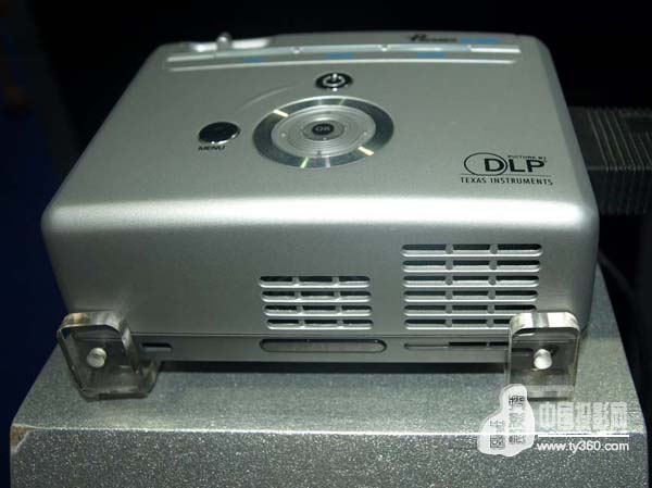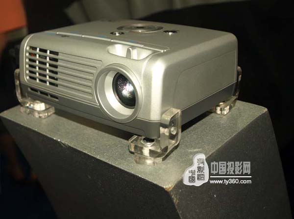 Micromirror Device)的DLP方式,面板分辨率为SVGA(800×600点阵)。光通量为30流明,对比度为1000:1。除模拟RGB、S视频、混合视频等输入端子外,还配备有SD卡插槽,可在不使用电脑的情况下进行发表演示。使用内置电池时的连续驱动时间为2个小时。